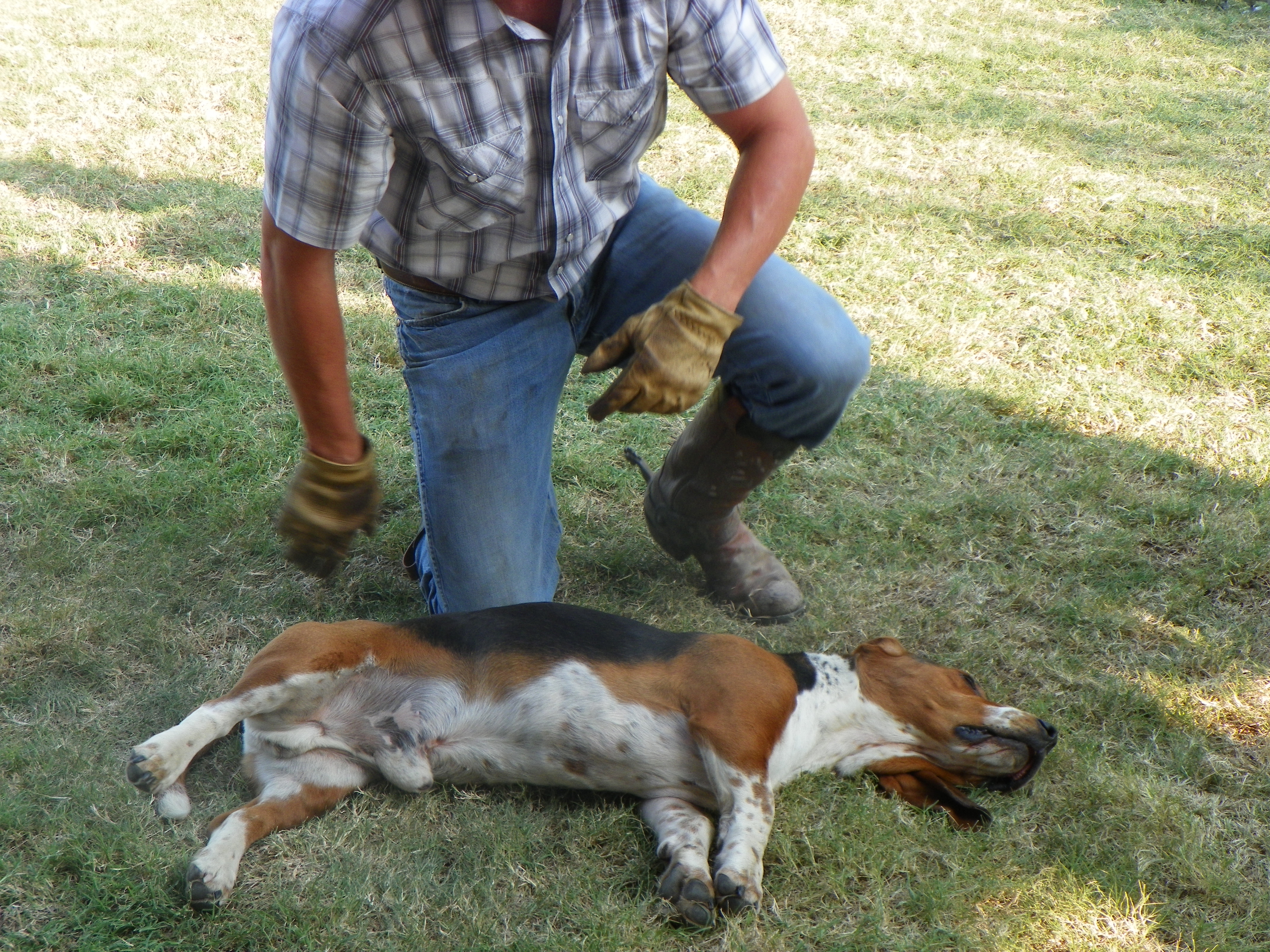 101_0542 Published May 21, 2013 at 4288 × 3216 in Thinking of Oklahoma . . . ← Previous Next → Ladd with Charlie. Charlie knows a good belly rub is coming.