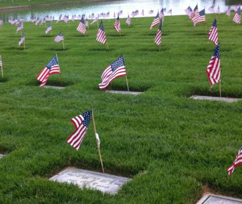 Today, Garrett’s middle school is heading out to Riverside National Cemetery (where my Dad is buried) to put flags on the markers. I love that his school is doing that. The trip will help bring the proper awareness of the holiday to the forefront for the kids. While I’m sure they’re all looking forward to their 3-day weekend and the start of the summer party season (even though they’ve got a couple of weeks of school left), I’m glad they’re pausing to reflect on the real reason for the Memorial Day holiday.