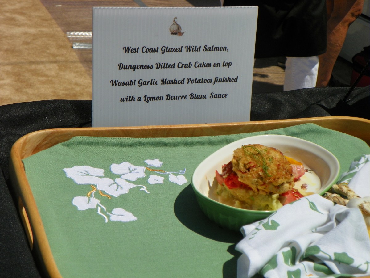 101_0063 Published July 30, 2013 at 4288 × 3216 in The Great Garlic Cookoff 2013: From the Other Side of the Stove ← Previous Next → Stacey’s double seafood punch of perfectly cooked salmon and crabcakes.