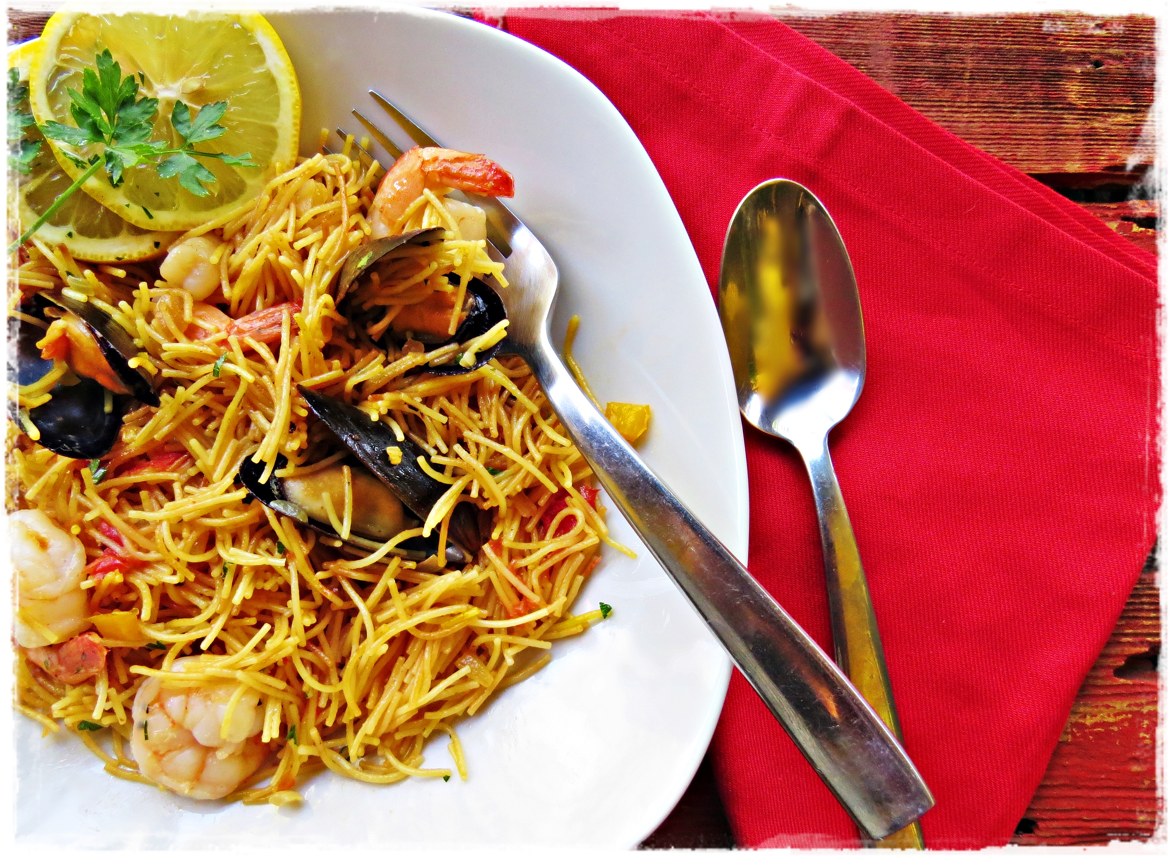 Spanish Fideo with Shrimp and Mussels