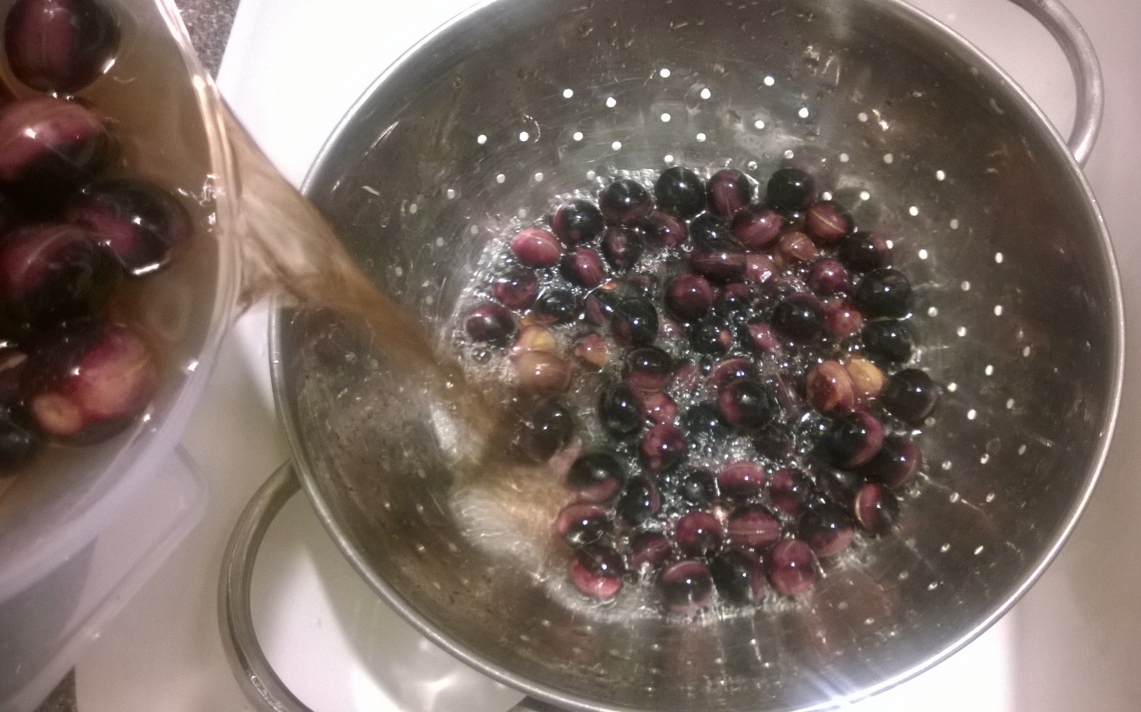 So, I downloaded this wonderful guide that includes everything you ever wanted to know about olives and curing them for good eating. I didn’t realize there were so many ways to cure olives. Lye, salt brine, dry brining, water curing . . . I talked to another friend who has been curing olives for years–he recommended the lye method. I might try that next time, but this time I went with the water curing method. I won’t write it all out here, but check out the guide, Olives: Safe Methods for Home Pickling from UC Davis. I’m using the recipe for Kalamata-style olives and I’m about 4 days in. It’s a long process. It’s going to be about 6 weeks (or longer) before I have edible (and hopefully delicious!) olives. I’ll keep you posted.
